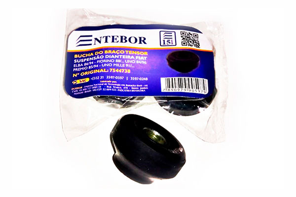 Bucha do Braço Tensor da Suspensão Dianteira Entebor. Esse produto é compatível com diversos veículos da FIAT. ELBA 1985 a 1996 Compatível com todas as versões PRÊMIO 1985 a 1996 Compatível com todas as versões UNO 1984 a 2016 Compatível com todas as versões FIORINO 1988 a 2016 Compatível com todas as versões